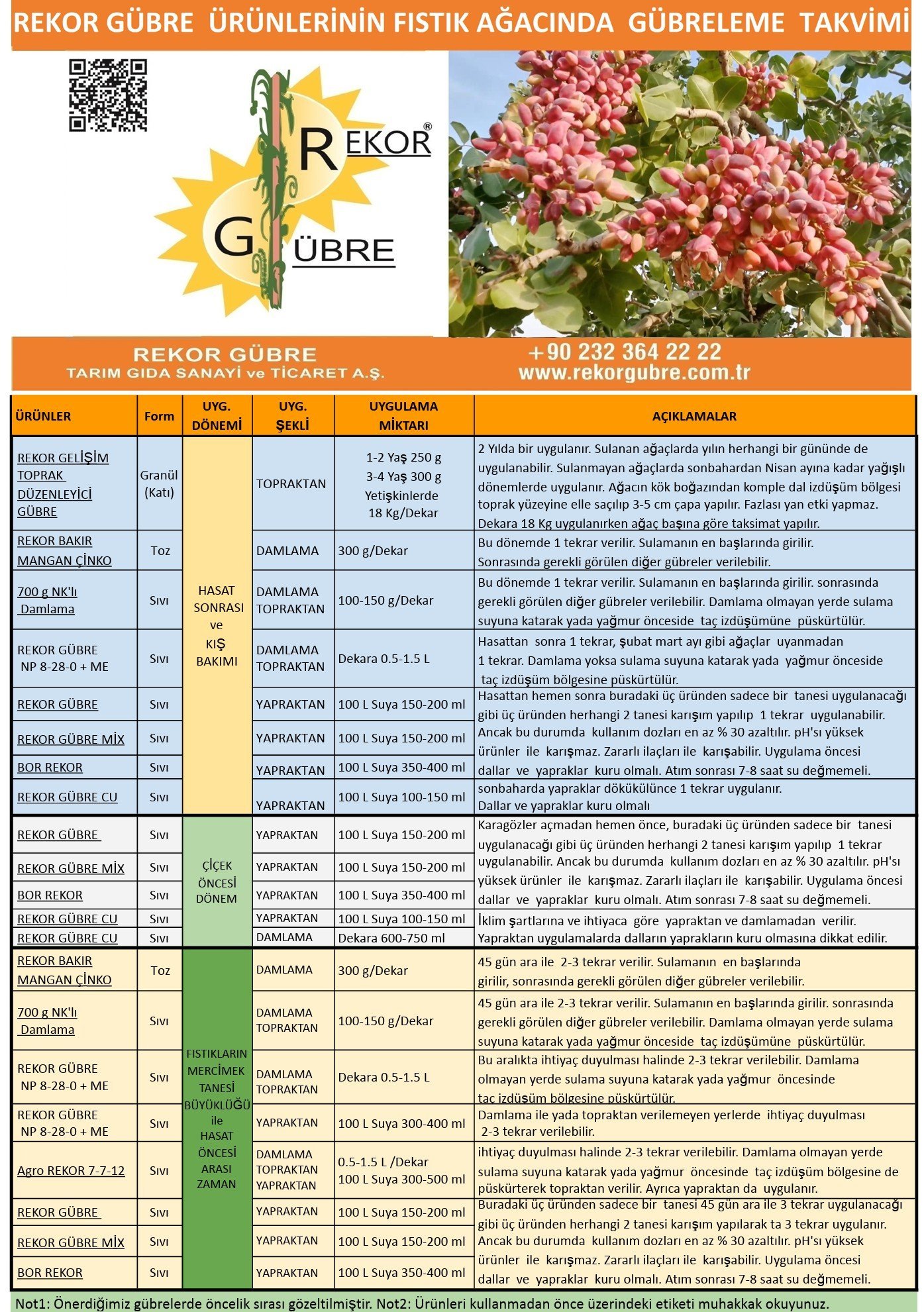 Aşağıdaki youtube videolar Antep fıstığı ve Siirt fıstığı yetiştiriciliğinin en çok yapıldığı illerde, yörelerde bölgelerdeki fıstık ağacı gübreleme işlemi aşamasında kullandıkları gübrelerin neler olduğunu nasıl yapıldığını anlatmaktadır. Yukarıdaki fıstık ağacı gübreleme programına baktığımızda fıstık ağacı için taban gübresi, yaprak gübresi, damlama gübresi gübrelerinin ne zaman ve hangi dönemlerde nasıl kullanılacağı konusunda bilgi vermektedir, gübre önerisi sunmaktadır.