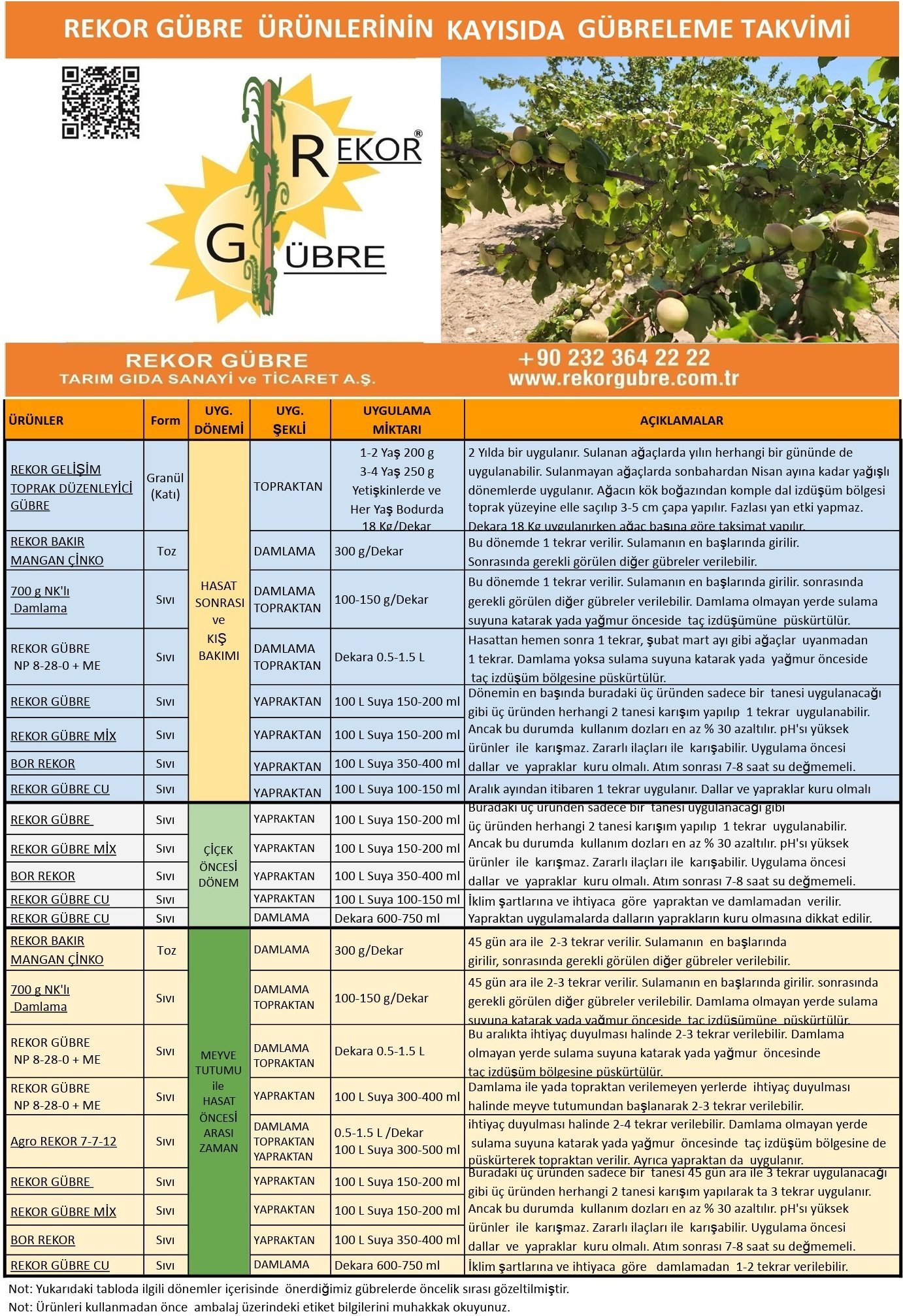 Kayısı Gübreleme Programı