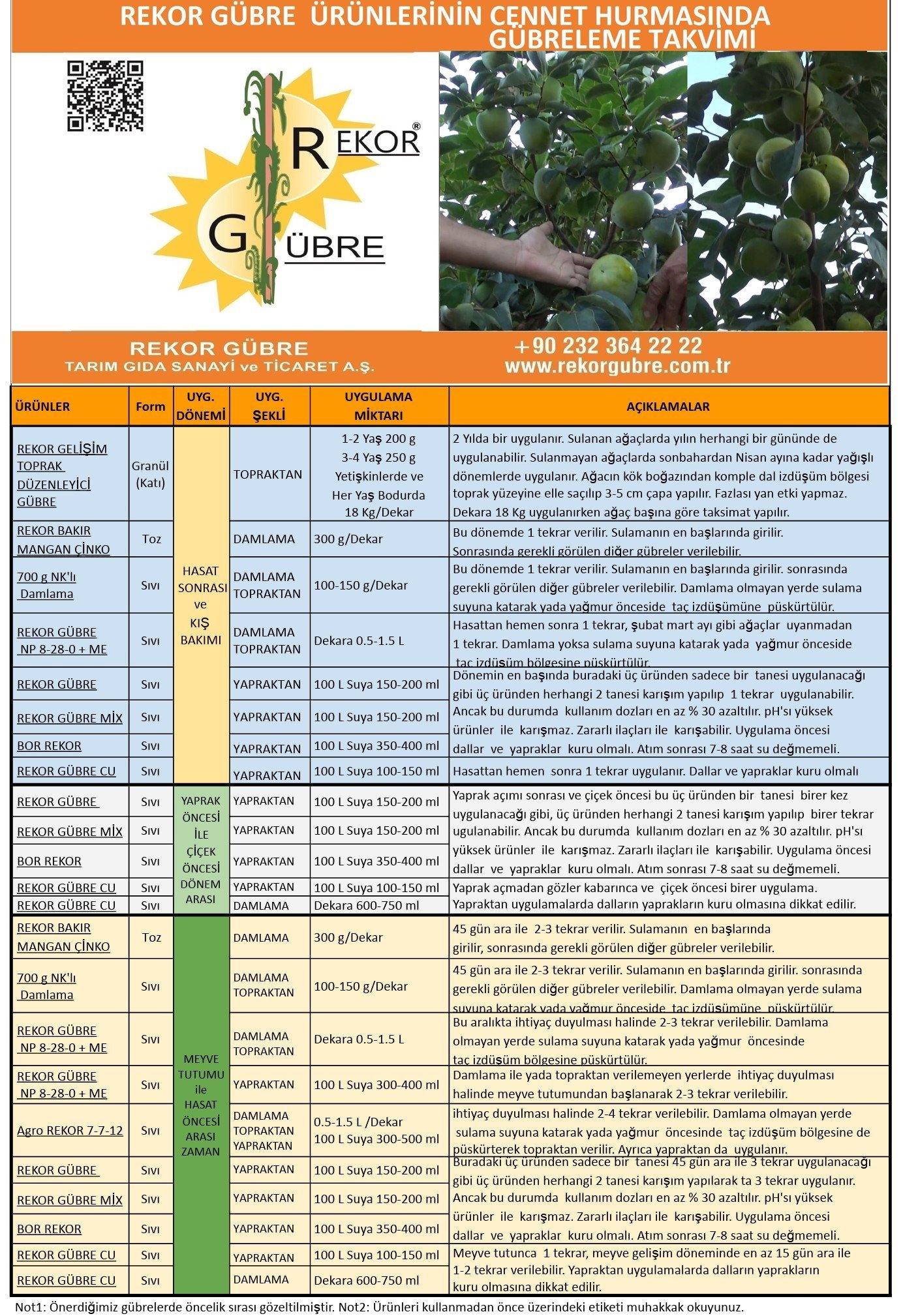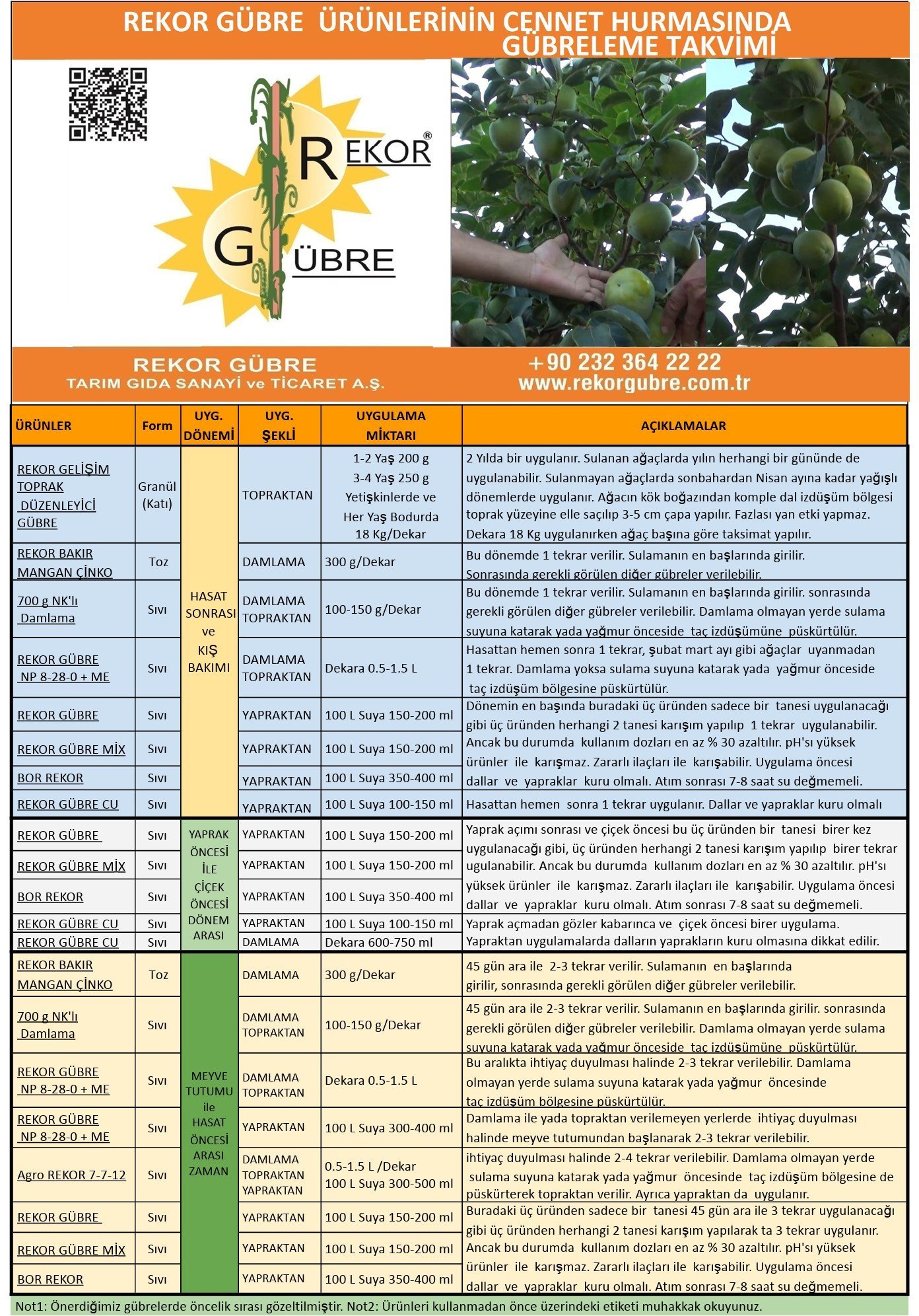 Trabzon Hurması - Cennet Elması Ağacı Gübreleme Programı