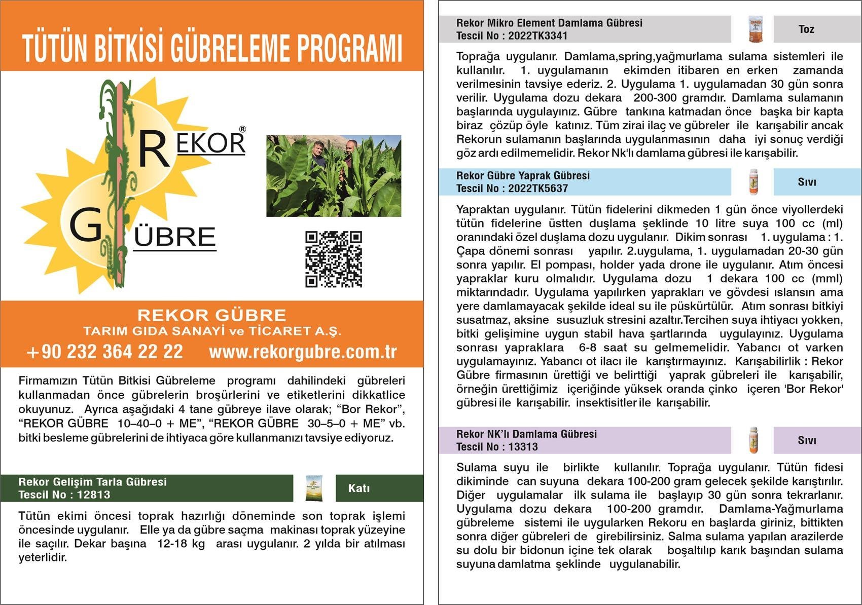 Aşağıdaki youtube linkden tütün bitkisi gübreleme ile ilgili videoları izleyebilirsiniz. Tütün yetiştiriciliğinin en yoğun şekilde yapıldığı bölgelerde çekilmiş videolar olup tütün gübreleme ile en yüksek verim ve en iyi tütün kalitesi nasıl elde edilir izleyebilirsiniz. yukarıdaki tütün gübreleme programında tütün için önerdiğimiz yaprak gübresi, damlama gübresi, gübreleri, taban gübresi, toprak düzenleyici ürünlerinden kimyasal gübre ve organik gübre çeşitleri vardır. Bu gübreler ile, azot,potasyum, fosfor, çinko, bakır, mangan gibi makro ve mikro bitki besleme ihtiyaçlarını sağlayabilirsiniz.