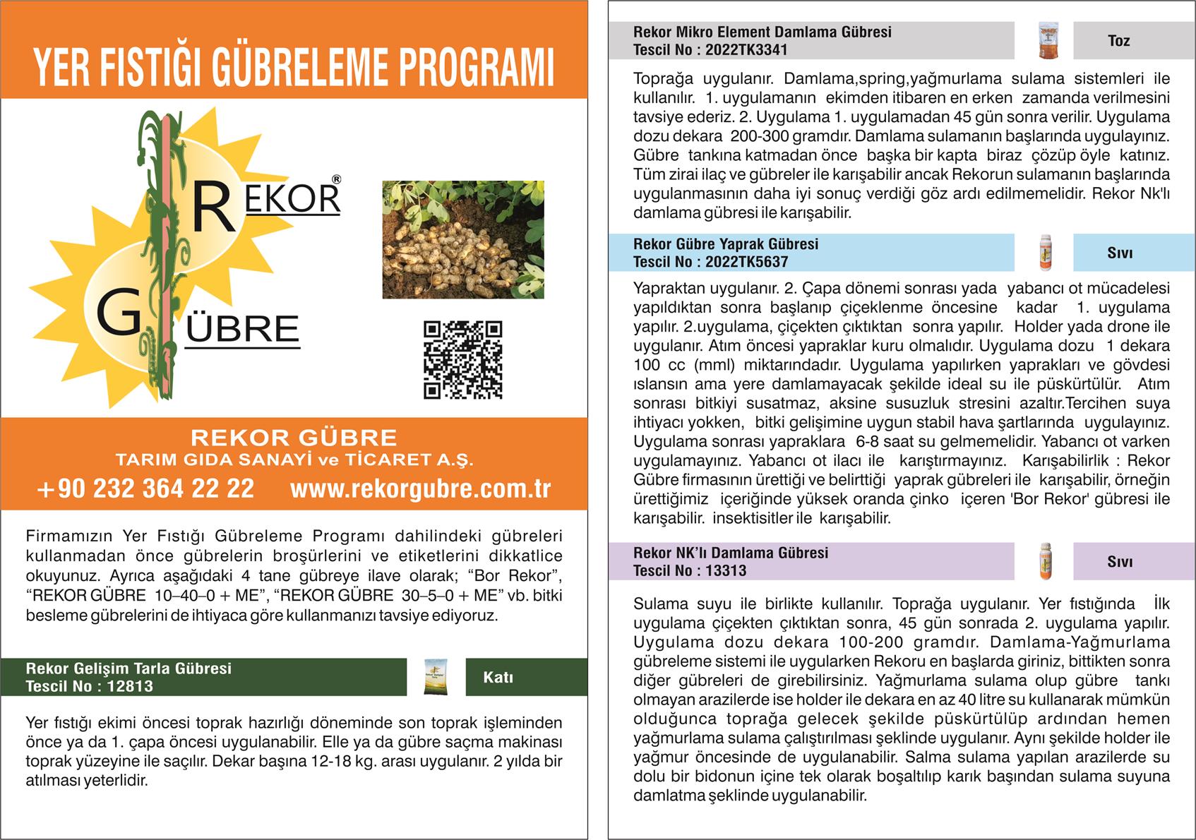 Yer Fıstığı Gübreleme - Gübre Önerisi ve Gübreleme Programı - Takvimi