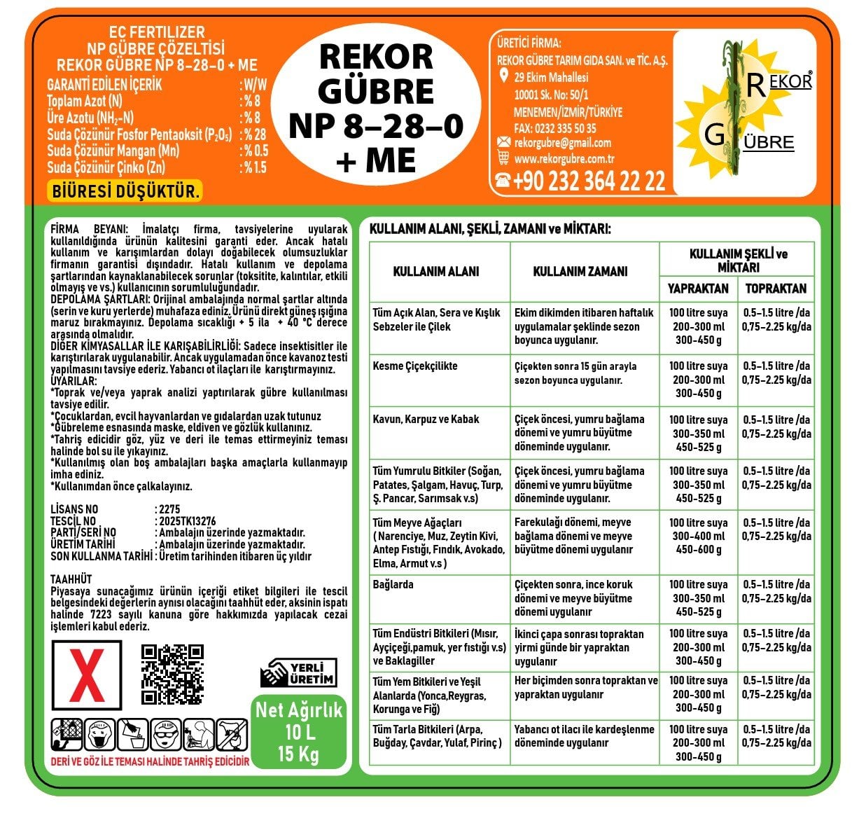 10L Rekor Gübre NP 8-28-0 +ME ( Ec Fertilizer NP Gübre Çözeltisi)