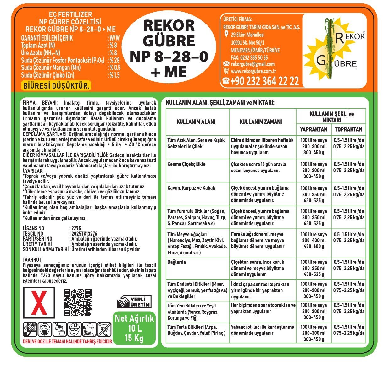 4L Rekor Gübre NP 8-28-0 +ME ( Ec Fertilizer NP Gübre Çözeltisi)